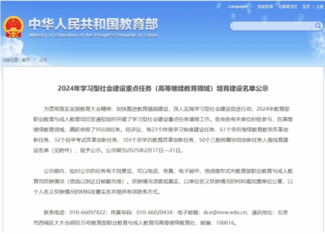 近日,教育部公示了2024年学习型社会建设重点任务(高等继续教育领域)培育建设名单。经专家评议,共遴选出23个终身学习制度建设任务、61个学历继续教育教学改革创新任务、32个自学考试改革创新任务、103个非学历教育改革创新任务、50个三教统筹协同创新任务入围培育建设名单。其中,我校申报的“生成式AI赋能继续教育学生教学服务系统的构建研究”项目成功入围学历继续教育教学改革创新任务名单。