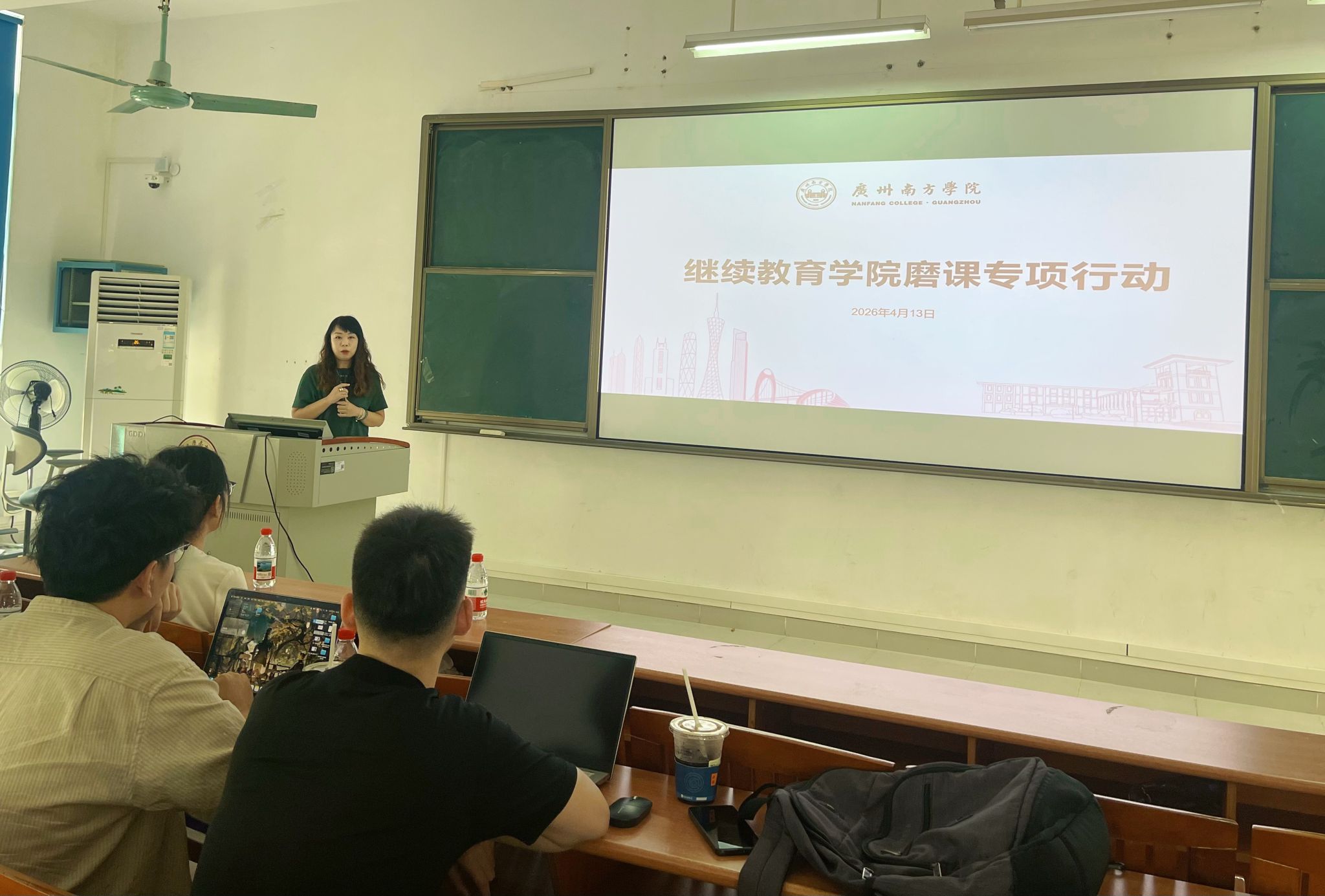 为进一步提升课堂教学质量,营造教学研讨浓厚氛围,2026年4月13日上午,继续教育学院在温泉校区第5号教学楼301教室组织开展磨课专项行动。学院全体教师参加活动,特邀云康医学与健康学院副教授、广东省第七届高校(本科)青年教师教学大赛“二等奖”获得者尹珍珍担任指导嘉宾。